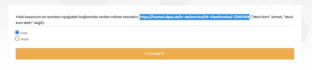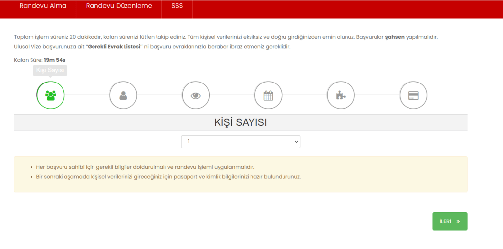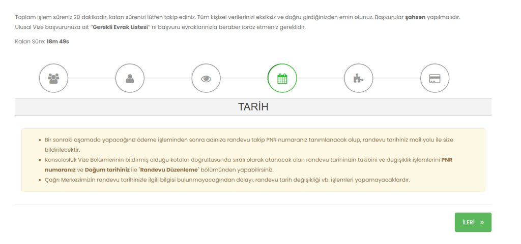 - Ön koşul soru cevaplarından sonra, kişisel bilgilerin doldurulduğu alana geçiyoruz.