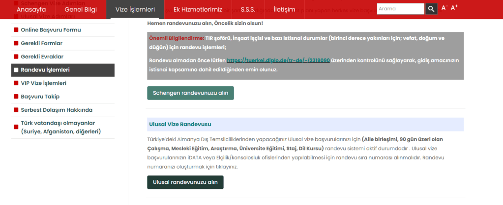 - Anasayfada “Almanya Vize Başvuru İşlemleri” ni seçiyoruz